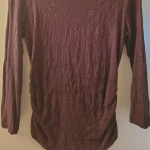Rafaella Turtleneck Top, Patterned design, gathered waist design, 3/4 sleeves, Brown, Size M