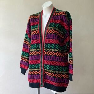Rafaella | Vintage Colorful Patterned Button Down V-Neck Cardigan Sweater