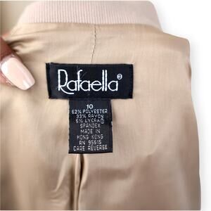 Rafaella Vintage Fawn Beige Full Zip Women Suit Jacket 10. Collared with hidden zipper. Excellent used condition. Fully lined. Polyester , rayon and spandex.