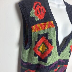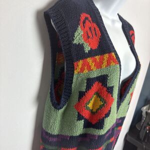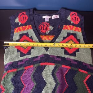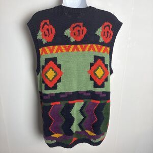 Rafaella Vintage Women Sweater Vest Colorful Southwest Hand Knitted Med Floral