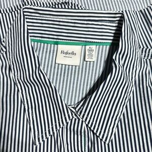 Rafaella Weekend Button Down Shirt XL Blue White Stripe Stretch Cotton Top