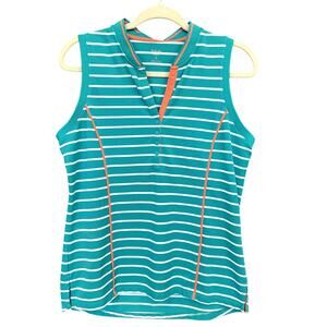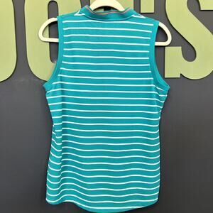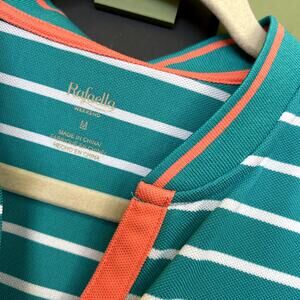 Rafaella Weekend Golf Striped Turquoise + Orange V-Neck Polo Top Size Medium