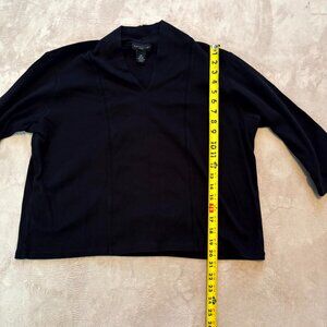 Rafaella Woman Black V-Neck Top 2X Long Sleeve Stretch Cotton Blouse