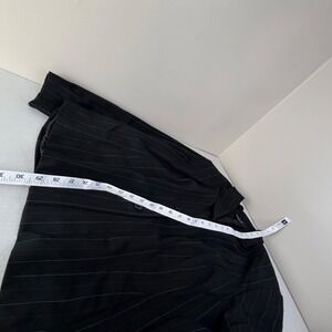The Rafaella Woman's Black Pinstripe Suit in size 20W includes a jacket and pants, making it a 2-piece set perfect for travel, casual, or business occasions. The suit features a no-button jacket with a notch lapel and a regular length, along with a tailored fit and stretch fabric for comfort. Made from a blended fabric of polyester, rayon and spandex, this pant suit is lined and machine washable, making it a versatile and stylish addition to any woman's wardrobe. Approximate measurements: Blazer shoulder pads, 2 button, notch, no pockets, 50" chest, 17" inseam sleeve, 24" outseam sleeve, 27" long, lined. Pants 40" waist, zipper button closure, pockets with buttons, 12" rise, 30" inseam, 40" outseam. Preowned in good condition.