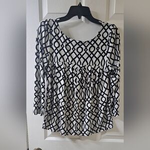 Rafaella Woman's M 3/4 sleeve Geometric Pattern Cream and Black Blouse