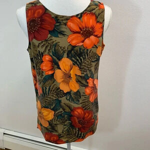 Rafaella Womans Silk Top Tank Small Sleeveless Orange Floral Print Light m34