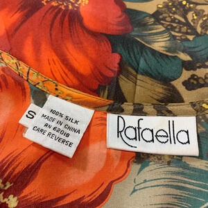 Rafaella Small 100 % Silk Top Orange Red Green Floral