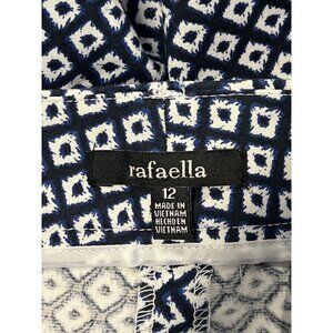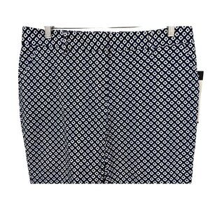 These classic fit Rafaella pants provide a tailored and polished look. Featuring a navy and white geometric pattern, they ensure versatility and comfort.