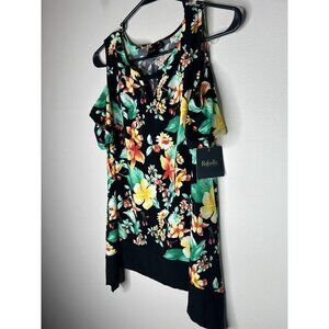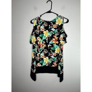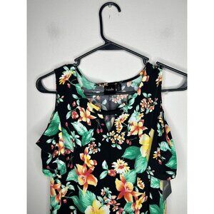 Rafaella Womens Black Floral V-Neck Top Hi-Low Sleeveless Pullover Size Medium
