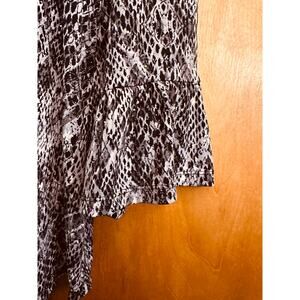 Rafaella Women's Black & Gray Snake Print Blouse Top Flared Sleeves Size M. This is a very nice top. The sleeves at the end are flared. Gorgeous print, good condition. Smoke Free Home.