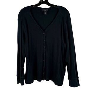 Rafaella Women’s Black Long Sleeve Ribbed Button Up Cardigan 2X