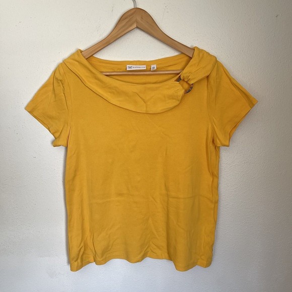 Rafaella Womens Blouse Bertha Collar Size Large Yellow Short Sleeve 100% Cotton