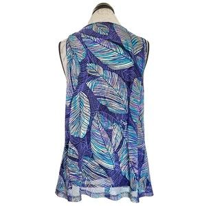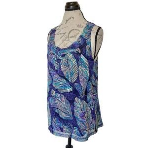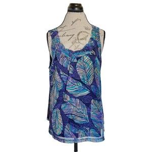 Rafaella Womens Blouse Size Large Mesh Artsy Print Sleeveless Work Wear Office