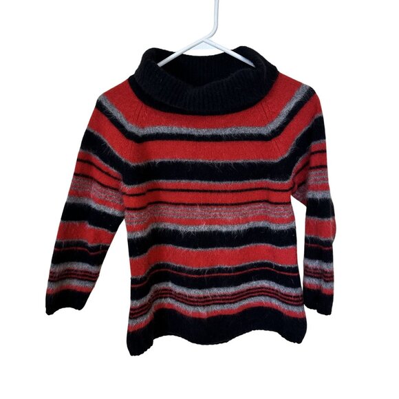 Rafaella Womens Cowl Neck Sweater Red Black Striped Angora Blend Large Lambswool