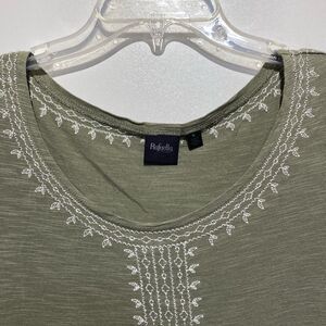 Rafaella Women's Green Embroidered Round Neck Short Sleeve Blouse Medium