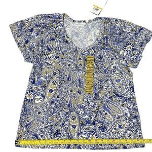Rafaella Ladies Tops Rafaella Knit V-Neck Ruffled Short Sleeve Fashion Top