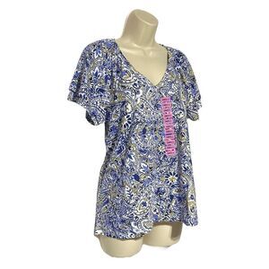 Rafaella Ladies Tops Rafaella Knit V-Neck Ruffled Short Sleeve Fashion Top
