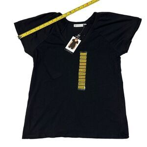 Rafaella Women’s Knit V-Neck Ruffled Short Sleeve Fashion Top