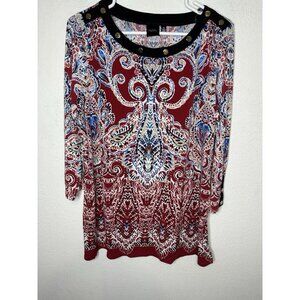Rafaella Women’s Paisley Pattern Button Accent Blouse Shirt Size Medium