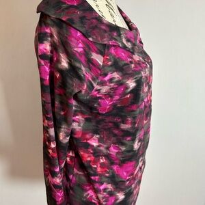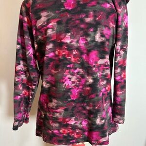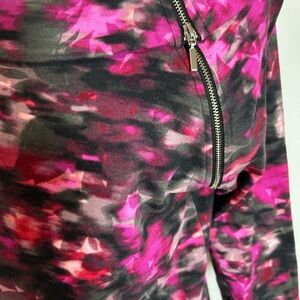 Rafaella Women’s Pink and Black Patterned Zip-Up Top.