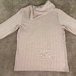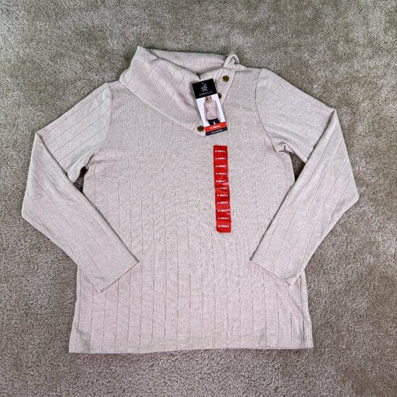 Rafaella Women's Ribbed Cowl Neck Top Wheat with Gold Button Size XS NWT E996
