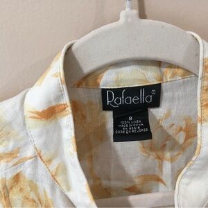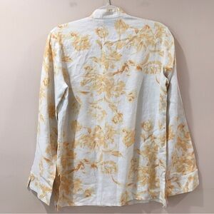 Rafaella Womens Size 8 Linen Top Shirt Yellow Cream Long Sleeve Button