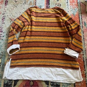 Rafaella Women's Striped Sweater, Brown/Mustard Color, Long Sleeve Size 1X