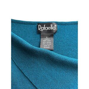 This Rafaella top features a sophisticated asymmetrical neckline, perfect for a polished look. Its nylon-rayon blend ensures a soft yet durable fabric, making it a versatile addition to your wardrobe. The rich teal color adds a touch of elegance, suitable for professional settings or casual outings. ***In pics color looks blue but is more green.
