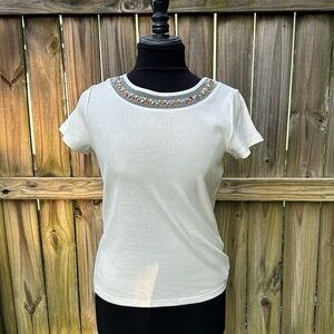 Rafaella Women's Tops Beaded Short Sleeve Top, size medium