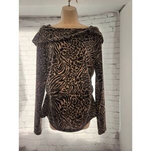 Add a touch of wild to your wardrobe with this Rafaella women's blouse in a size large. The eye-catching leopard print and colorful animal print pattern make it a perfect choice for a party, cocktail event, or casual outing. The blouse features a square neckline, classic/fitted long sleeves, and a pullover closure.