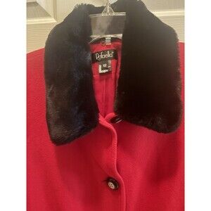 Rafaella Wool Cashmere Blazer Sz12 Red Lined Coat 4 Button Pockets Fur Collar