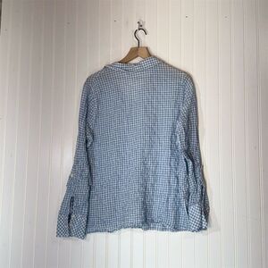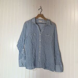 Rafaella XL Blue White Gingham Button Front Shirt Stretch Cotton Blouse Cottage