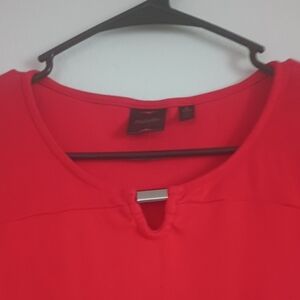 Rafaella Y2K Red Short Sleeve Jersey Knit Women's Size Small Top Silver Keyhole