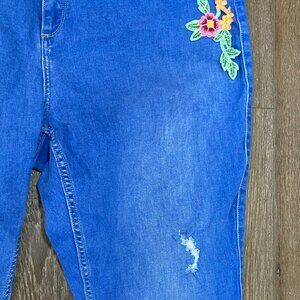 Rafaella Y2K Womens 22W Floral Embroidered Stretch Jeans Blue, Light Distressed