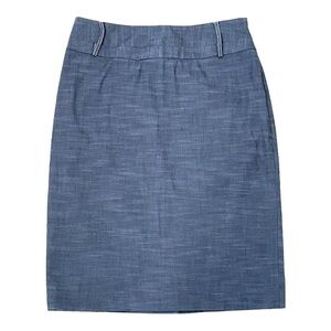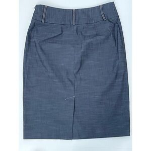 Beautiful dark blueish grey skirt. Fabric looks a bit like denim but is very light weight. Great stitching detail.