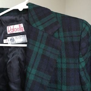 100% worsted wool, This is a really nice blazer that I got second hand, in great condition, and never ended up wearing it because I overlooked the length of the arms. I was pleased to find that the pockets are functional and not decorative. It is petite. Super cute!