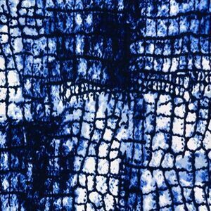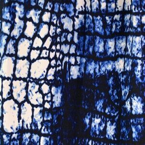 Pretty blue and white patterned top with a keyhole neckline that has a silver hardware feature. Stretch.