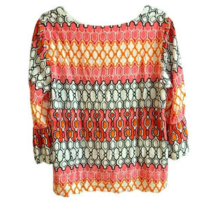 Rafaella weekend size large top features a v-neck,3/4 length bell sleeves