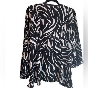 Rafaella woman’s animal print top, adjustable sleeve, black & white size large