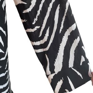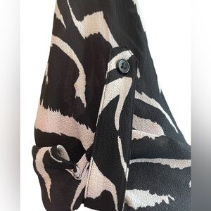 In great condition, Rafaella black and white animal print top. Sleeves can be worn long or folded up with roll sleeve tab. 2 zippered front pockets and mild waterfall hem.