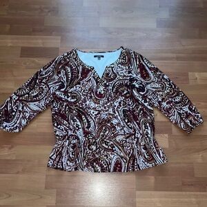Rafaella women’s paisley print peplum peasant style top with split jeweled neck