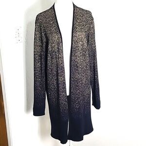 Rafaella Black & Metallic Gold Long Cardigan, Size Large