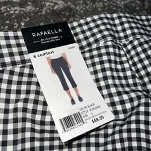 Rafaella Women Pull on comfort capri pants faux pockets ankle split (Black, S) MSRP $59.50