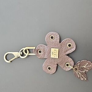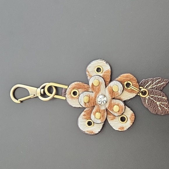 Rafe brown & white fur/leather key chain/bag charm with gold hardware.