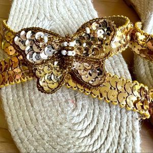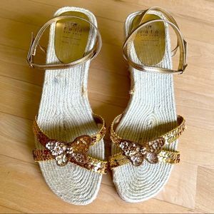 Rafe New York Gold Sequin Butterfly Wedge Sandal