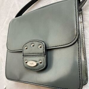 Rafe New York Gray Leather Crossbody Purse. Great used condition. Slight sheen to this gray leather. Front magnetic flap closure. Long shoulder strap with 24" drop. A few small marks but otherwise great condition. One inside zipper pocket and one slip pocket. Measures approximately 7.5"x7".