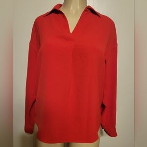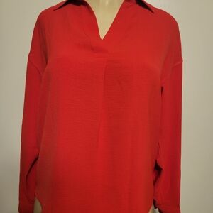 Elegant red V-neck blouse perfect for any occasion. Comfortable and stylish, ideal for pairing with your favorite jeans or skirt.