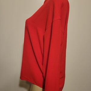 Rafellla Womens Red V-Neck Blouse Demure Work Business Causal