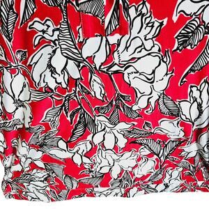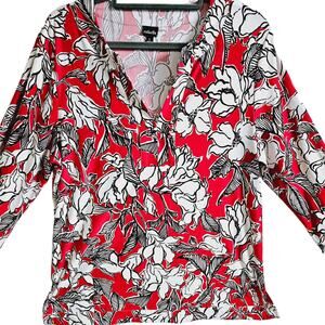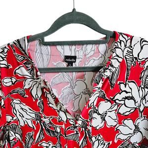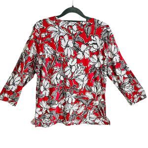 Raffaella Women's L Long Sleeve V-Neck Blouse Bright Red Doodle Flowers Floral