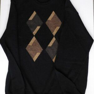 Raffi Black Argyle Diamond Crewneck Wool Blend Sweater Size L Italy Mens